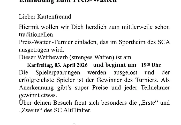 Traditionelles Preis-Watter-Turnier am Karfreitag des SC Altfalter