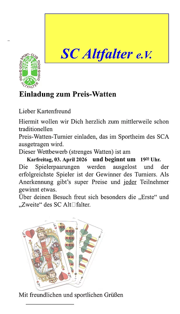 Traditionelles Preis-Watter-Turnier am Karfreitag des SC Altfalter