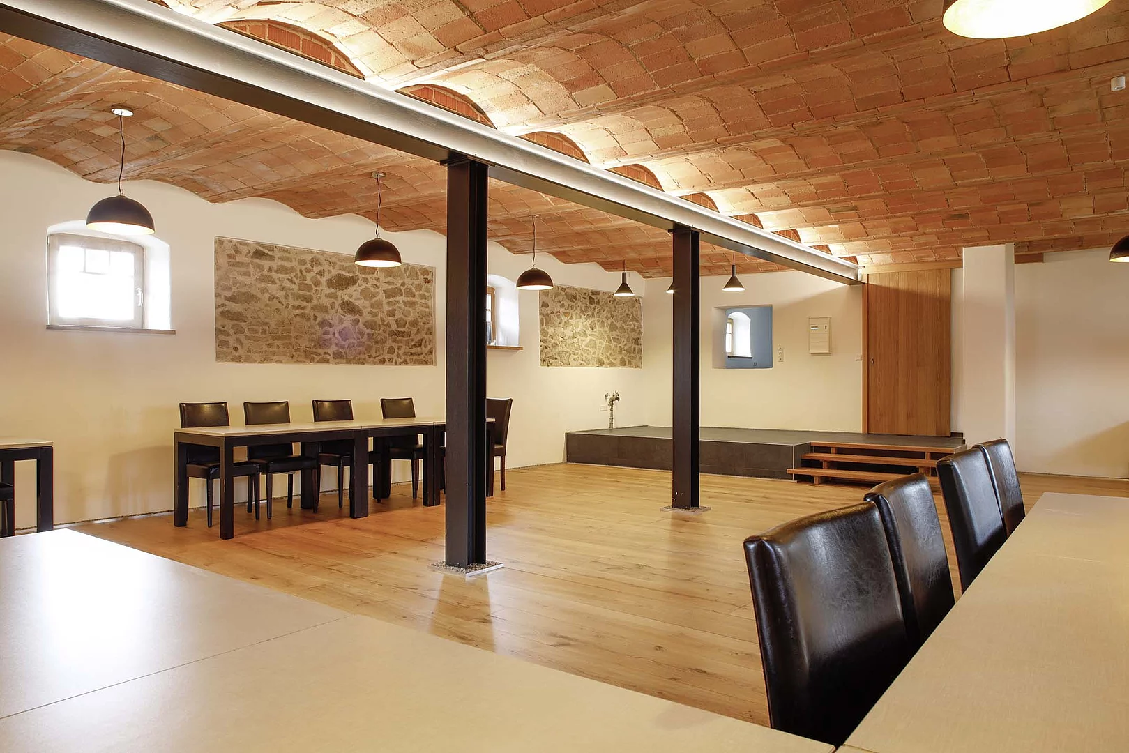 Der zweite Abschnitt war der Umbau und die Sanierung des Stallgebäudes zu einem Gemeinschaftshaus, das der Dorfgemeinschaft und den verschiedenen Vereinen für Veranstaltungen dient, die dem Gemeinschafts- und Vereinsleben förderlich sind. Dieses bisherige Stallgebäude, das sehr aufwändig umgestaltet und renoviert wurde, ist heute zu einem absoluten Juwel geworden.