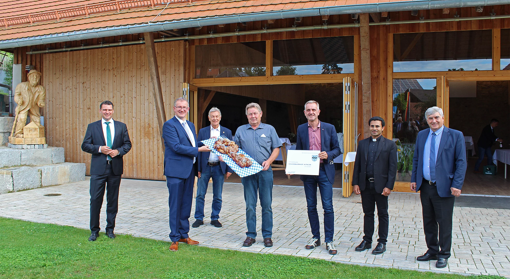 „Der Schlossbauernhof – das neue Herz Altfalters“ oder „Die neue Seele von Altfalter“ – das sind Aussagen, die man im Zusammenhang mit dem Schlossbauernhof auch bei seiner Segnung am 6. August 2021 immer wieder hören konnte. Ob nun Herz oder Seele: Beides macht sehr anschaulich deutlich, dass hier erstens etwas wirklich Großartiges entstanden ist und zweitens auch die Art und Weise wie es zustande kam, etwas äußerst Bemerkenswertes ist. Und es kommt in diesen Aussagen trefflich zum Ausdruck, dass auch von Auswärtigen und Gästen mit Hochachtung anerkannt wird, was die Dorfgemeinschaft ehrenamtlich und unentgeltlich geschaffen hat. Was das Projekt Schlossbauernhof besonders auszeichnet, ist, dass hier sehr hochwertige handwerkliche freiwillige Arbeitsleistungen erbracht wurden, sodass sowohl für die Fördergeber Bund und Freistaat Bayern, als auch für die Gemeinde Geld eingespart werden konnte. Das Gesamtprojekt beziffert sich auf einen Kostenaufwand von etwa 1.785.000 Euro. Durch die Förderung durch die Regierung der Oberpfalz im Städtebauförderungsprojekt konnten insgesamt 992.000 Euro ausbezahlt werden. Die Ortsbevölkerung von Altfalter hat 11.730 dokumentierte Stunden freiwillige ehrenamtliche Arbeitsleistung erbracht. Für die Gemeinde verblieb ein Eigenfinanzierungsanteil von ca. 670.000 Euro.