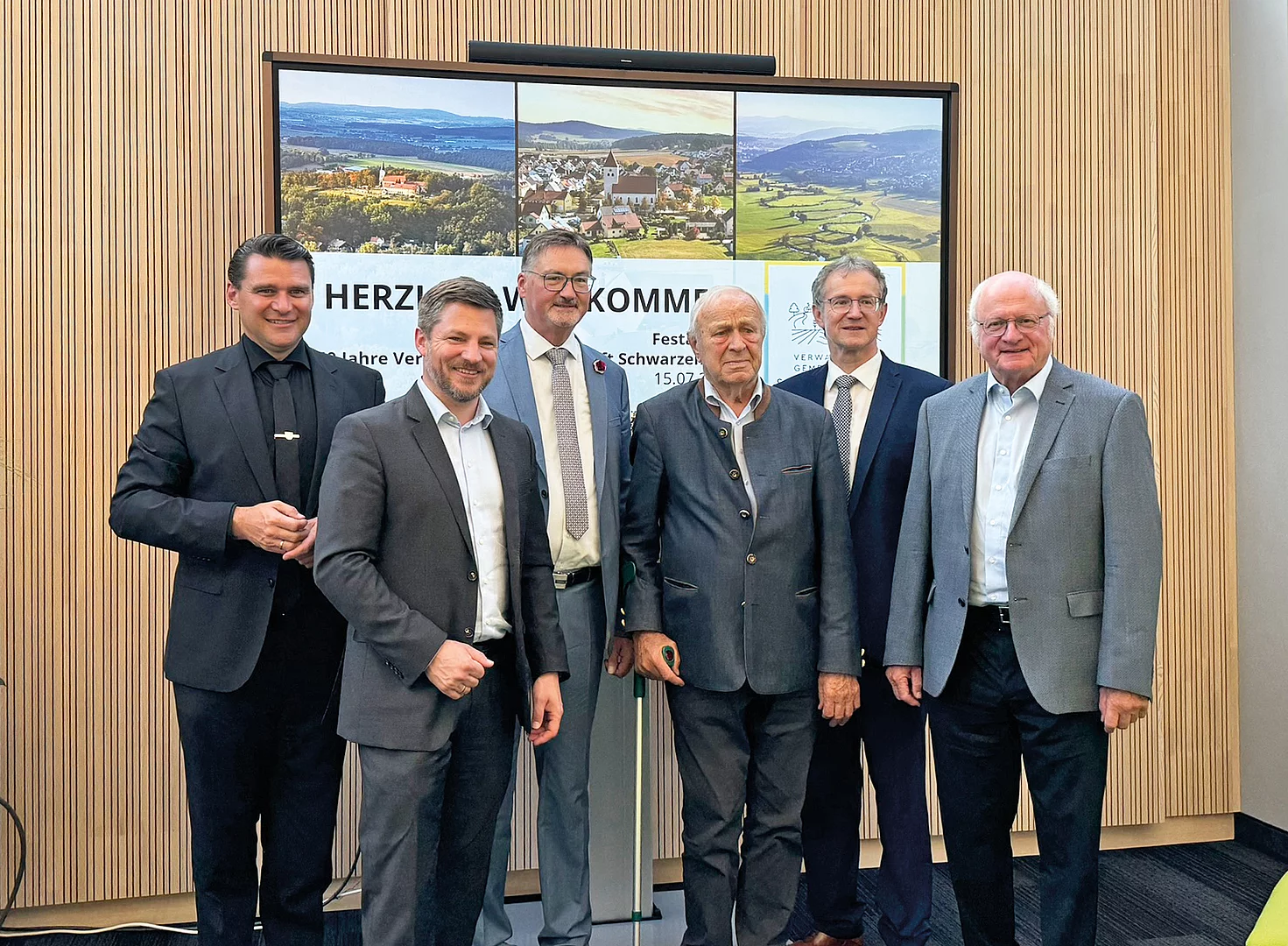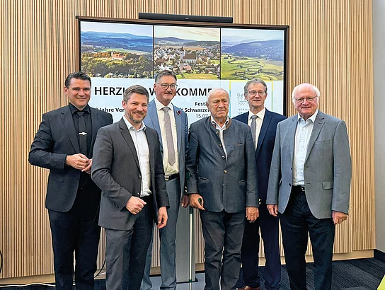 Die Bürgermeister der drei Mitgliedsgemeinden Peter Neumeier, Hans Prechtl und Franz Grabinger begrüßten dazu zahlreiche Mitarbeitende, Mitglieder der Gemeindegremien sowie Ehrengäste im Rathaus, unter ihnen auch Landrat Thomas Ebeling und die Altlandräte Volker Liedtke und Hans Schuierer. Letzterer leitete als Landrat 1974 die konstituierende Sitzung der Gemeinschaftsversammlung, bei der der damalige Schwarzenfelder Bürgermeister Ludwig Ettl zum Vorsitzenden gewählt wurde.