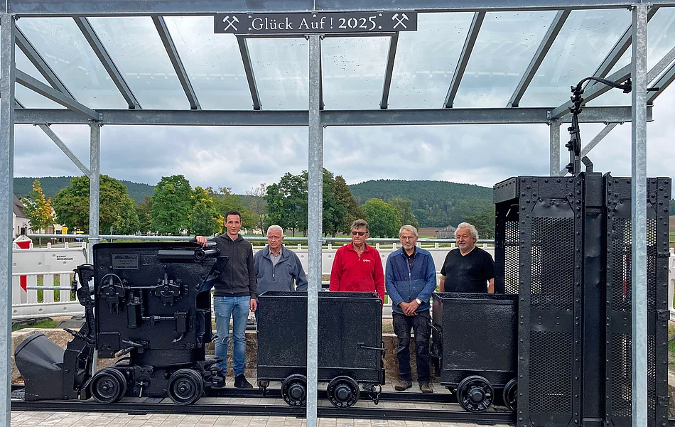 Auf einem Grünstreifen zwischen Dorfplatz und Radweg sollten verschiedene Bergbaurelikte aufgestellt werden. In den vergangenen Wochen wurde der Platz hergerichtet und eine Überdachung errichtet. Neben einem Schachtaufzugskorb wurden zwei Loren aufgestellt. Außerdem gibt es einen Wurfschaufellader zu besichtigen, der bisher beim Heinrich-Kocher-Stollen sein Dasein fristet. Eine Infotafel soll noch folgen. Angedacht ist auch eine Flussspat-Ausstellung im Dorfstodl.