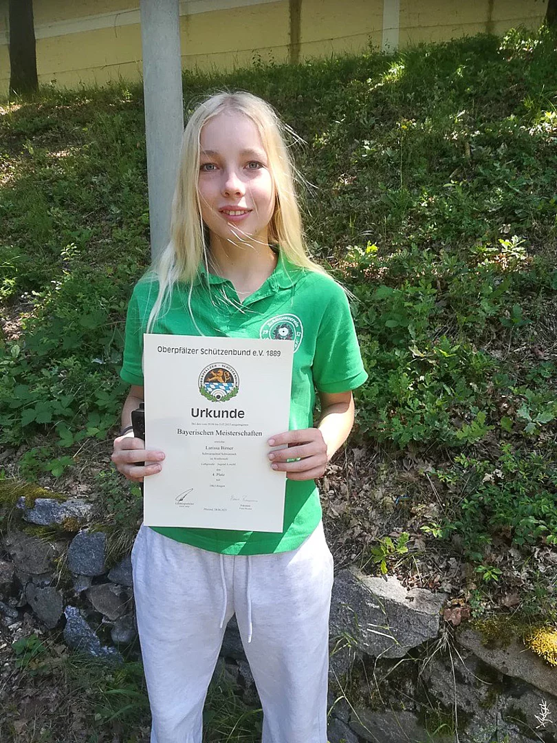Eine beeindruckende Leistung hat die 15-jährige Larissa Birner aus Schwarzach bei Nabburg vollbracht: Bei der Landesmeisterschaft im Luftgewehrschießen im Juni erreichte sie den starken vierten Platz mit 398,5 Zählern. Nur 0,2 Zähler trennten sie von der Qualifikation zur Deutschen Meisterschaft – ein hauchdünner Abstand, der zeigt, wie hoch das Niveau war. „Ich bin mir sicher, dass sie es nächstes Jahr schafft“, sagt Bürgermeister Michael Wilfahrt zuversichtlich. Die Gemeinde gratuliert Larissa herzlich zu diesem Erfolg und freut sich mit der jungen Sportlerin. Larissa trainiert beim Schützenverein Schwarzachtal e.V., wo seit Jahren konsequent in die Nachwuchsarbeit investiert wird. Maßgeblich verantwortlich für die gute Jugendarbeit sind Josef Pamler und Tobias Braun. Diese werden von Dietmar Pösl von der SG Wölsendorf unterstützt. "Es ist schön zu sehen, dass die Wölsendorfer Schützen in Schwarzach eine neue Heimat gefunden haben und die Vereine immer mehr zusammenwachsen", so Wilfahrt. Jeden Mittwoch ab 16 Uhr versammeln sich regelmäßig 10 bis 15 Kinder und Jugendliche zum Training – mit Engagement, Disziplin und natürlich jeder Menge Spaß am Schießsport. Der jüngste Erfolg von Larissa Birner zeigt, dass sich diese Arbeit auszahlt – und dass in Schwarzach noch viel Potenzial schlummert.