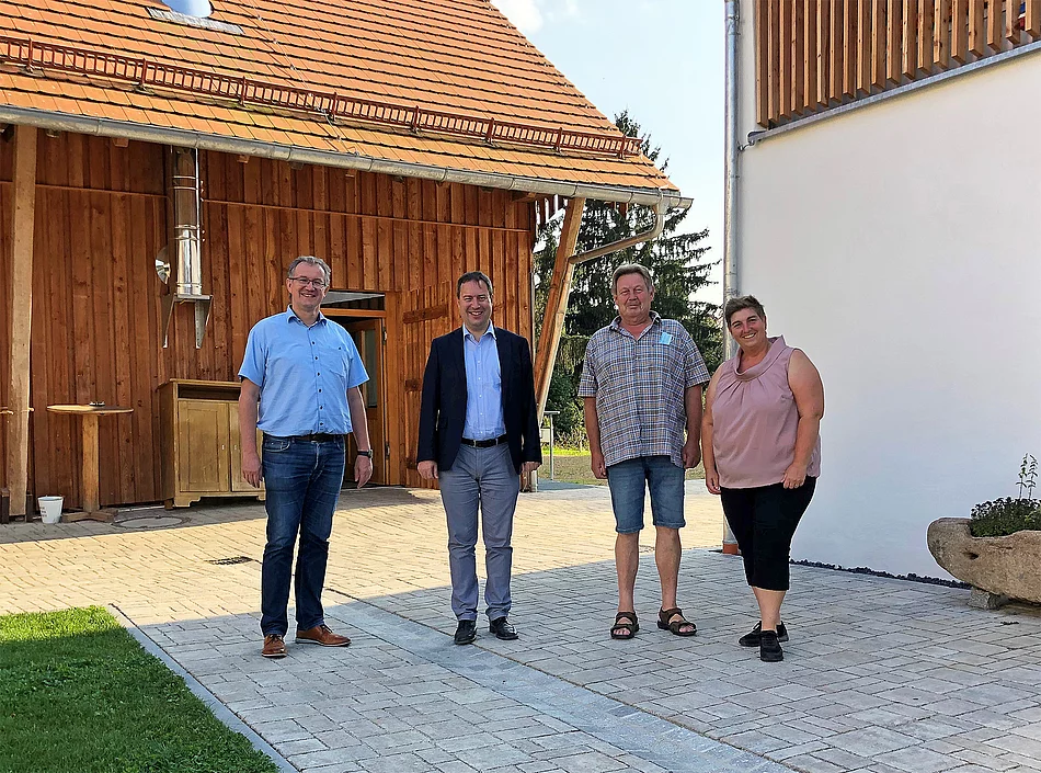 Zusammen mit Bürgermeister Franz Grabinger und den Vorsitzenden des Schlossbauernhof-Vereins Diana Kraus und Franz Geiger besichtigte er das Gemeinschaftsprojekt in der Mitte Altfalters und war davon begeistert. Mit einer hohen Förderung von rund 992.000 Euro hatte die Regierung der Oberpfalz, bei der Florian Luderschmid seit April diesen Jahres der Vertreter des Präsidenten ist, das Städtebauförderprojekt unterstützt. Der Vizepräsident war besonders angetan von den vielen ehrenamtlichen Helferstunden, die von der Bevölkerung geleistet worden waren. Der Feststadel, das Gemeinschaftshaus und die Außenanlagen mit dem Dorfbackofen seien ein wunderbares Gesamtobjekt geworden und könnten nun von der Bevölkerung und den Gemeindeangehörigen genutzt werden. Bürgermeister Grabinger bedankte sich nochmals für die staatliche Unterstützung, ohne die das Projekt überhaupt nicht darstellbar gewesen wäre, und konnte berichten, dass der Schlossbauernhof schon in den ersten Wochen gut angenommen wird. Auch hätten schon zwei standesamtliche Trauungen stattgefunden. Grabinger lud Florian Luderschmid ein, zu einem festlichen Anlass, wie zum Beispiel der traditionellen Kirchweih, nach Altfalter und in die Gemeinde Schwarzach zurückzukehren.